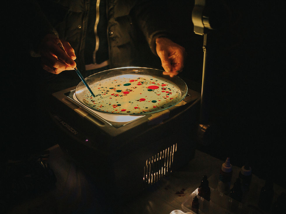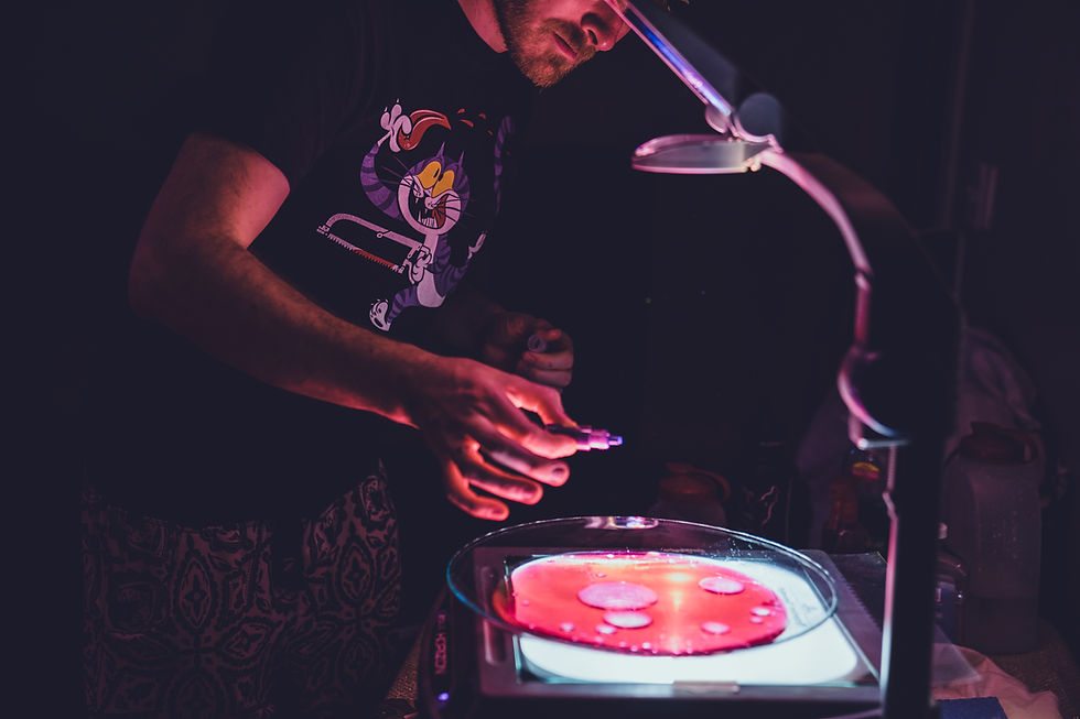 Live analog visuals are the core of my practice. Rooted in the ageless mediums of liquid light, found footage, video synthesizers, and old-school overhead projectors, I create experiences that capture and distort reality through raw, hands-on experimentation. The result is an organic, unpredictable aesthetic that resists digital polish.